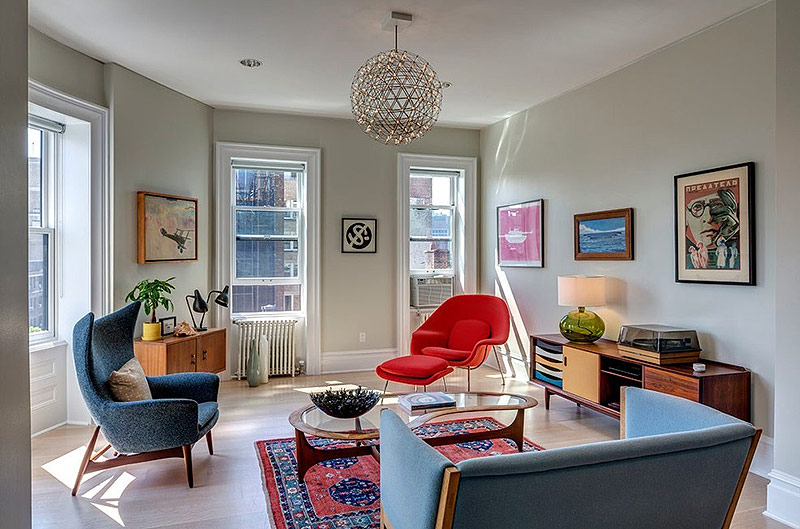 Il est important de choisir le bon rapport de couleurs pour la décoration, les meubles et les textiles, afin que la pièce donne l’impression d’un tout, et non d’un mélange d’éléments disparates. Dans un style moderniste, permettant toutes sortes de déviations et d’innovations, une telle ligne fragile est très facile à manquer. En conséquence, au lieu d’un intérieur élégant, vous obtenez le même éclectisme. De plus, il est souvent de très mauvaise qualité.
