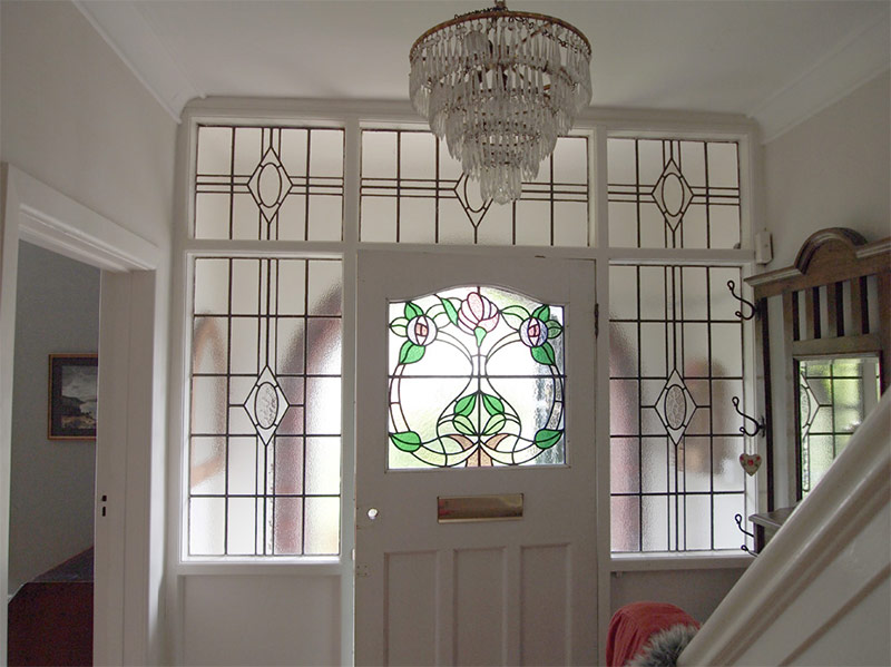 Porte d'entrée vitrail dans le style Art Nouveau.
