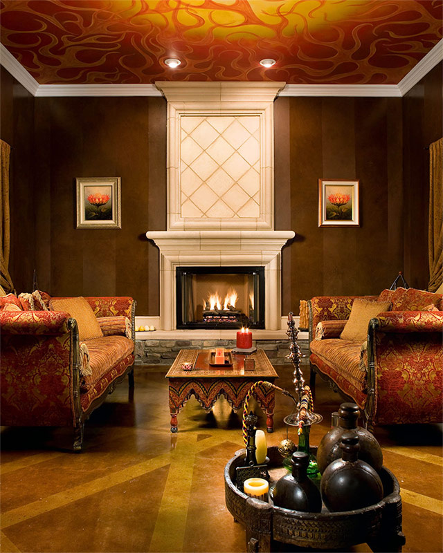 Tout d'abord, il est nécessaire de déterminer l'élément d'accent, puis d'ajuster l'arrière-plan et les remplissages de couleur supplémentaires.Si vous devez attirer l'attention sur le mobilier chic - la couleur des murs, la saturation des vitraux ou la pomposité de la décoration du plafond ne doivent en aucun cas l'interrompre. Soyez fier des vitraux de l'auteur sur les fenêtres, le plafond et la porte: les meubles, les murs et les sols doivent être réalisés dans des tons pastels d'une ou deux couleurs et dans des tons différents. N'utilisez pas trop de couleurs - nous créons un intérieur confortable pour les yeux, pas un arc-en-ciel, même si toutes ses couleurs sont harmonieuses les unes avec les autres.
