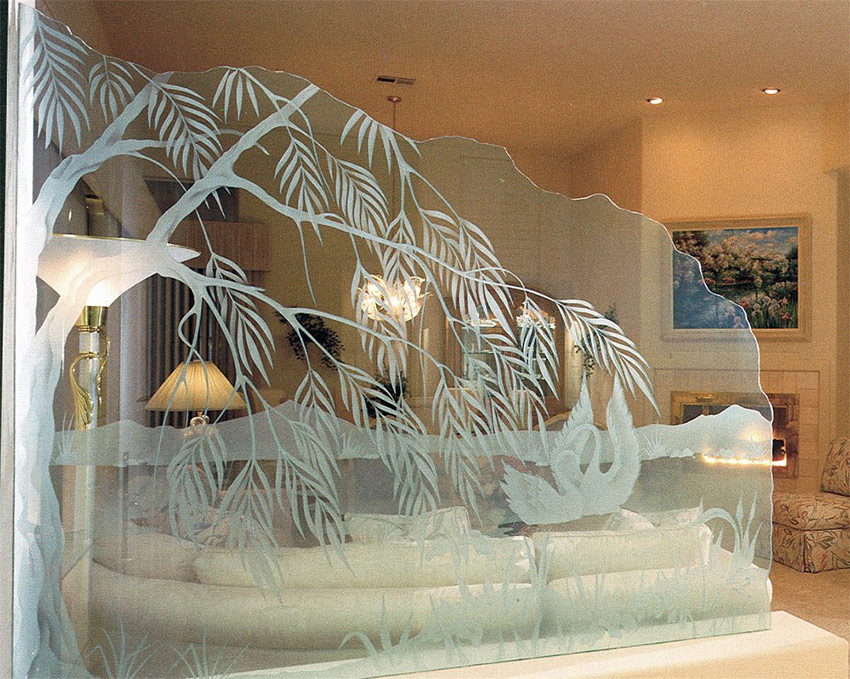 Le verre coloré à l'intérieur, ainsi que transparent, peut avoir une valeur non seulement décorative, mais aussi pratique. Il est utilisé dans la fabrication de meubles, de lustres, de cloisons en verre. Les objets transparents et fragiles rendent l'intérieur exquis, le remplissent d'air, créent du confort.