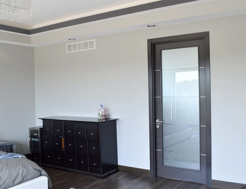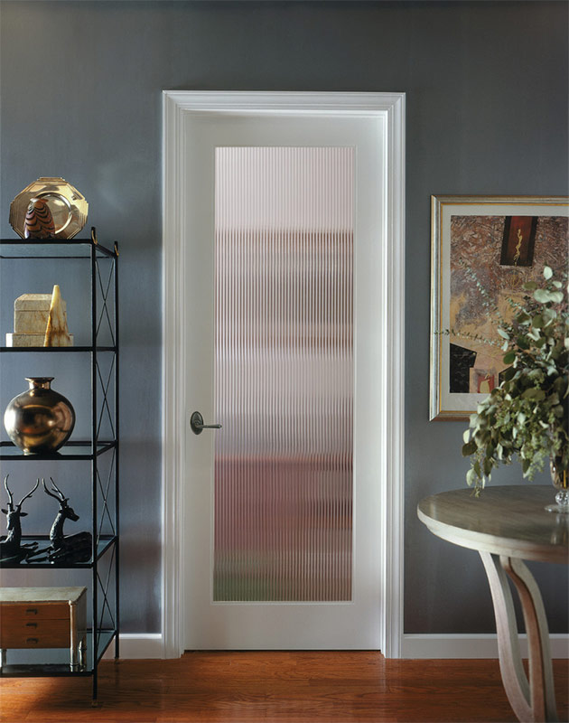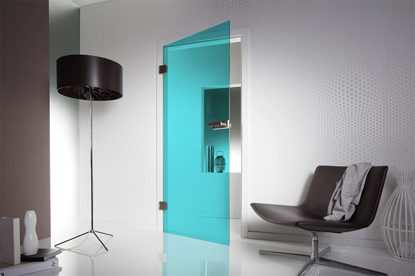 Pour accentuer l’individualité de la pièce, vous pouvez utiliser un verre décoratif à l’intérieur: coloré, avec un motif, mat, verre teinté, avec un motif mat sablé et une sculpture d’art. Les portes faites d'un tel matériau changent complètement l'apparence de la pièce. De plus, ils résistent à la charge, ont une insonorisation et des propriétés décoratives pas moins graves que le bois.