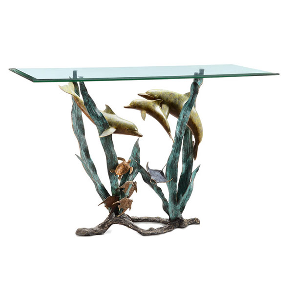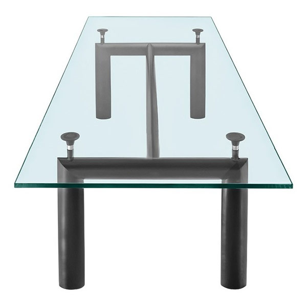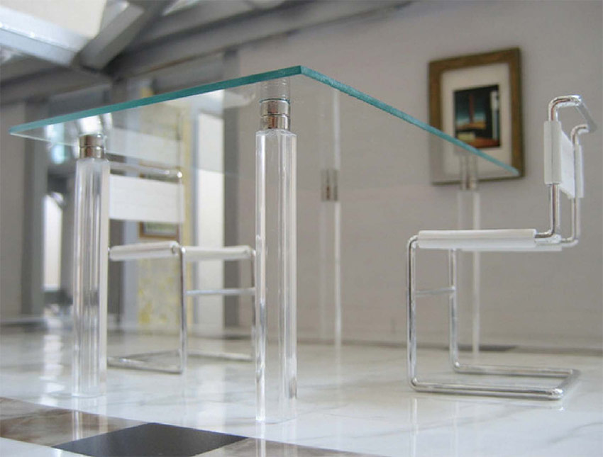 Ceci est l'un des meubles populaires et a longtemps été populaire. Les tables sont faites de café, thé, salle à manger, rondes et carrées, complètement en verre ou seulement avec un plateau transparent. Ils sont présentables à l'extérieur, respectueux de l'environnement, ont une fonction décorative forte. Cependant, ils nécessitent des soins appropriés avec des produits de nettoyage et un chiffon doux. Après tout, les empreintes digitales, la nourriture, les boissons peuvent rester sur le verre. Si la maison a de jeunes enfants, vous ne devriez pas choisir une table instable sur le support central. Pendant le jeu, l'enfant peut s'accrocher et le renverser. Dans ce cas, une table en bois massif à quatre pieds avec un plan de travail transparent est plus appropriée.