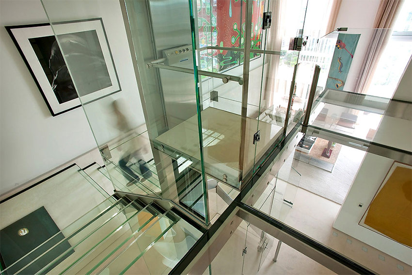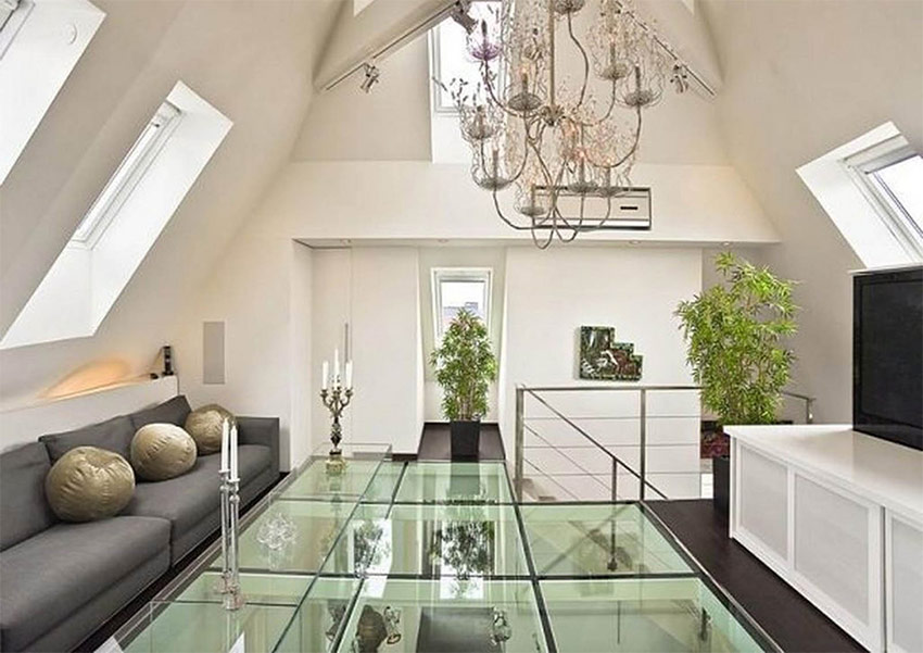 En plus des cloisons, les portes à insertions transparentes, les sols en verre et même les escaliers sont à la mode aujourd'hui. Bien entendu, de telles structures peuvent effrayer les personnes souffrant d'acrophobie (peur des hauteurs). Mais en général, ils créent un design unique et remplissent la pièce d'espace.