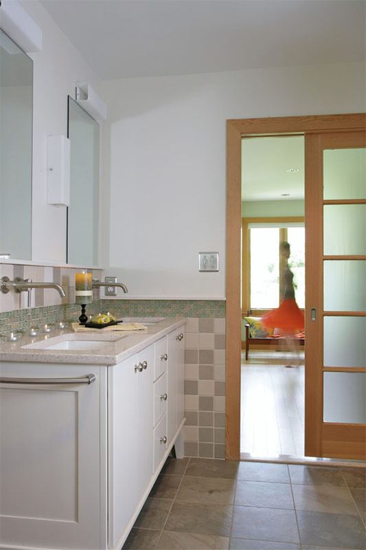 Le verre convient à ce style au même titre que la pierre ou le bois, car il s'agit d'un matériau totalement écologique. En effet, le verre contient des composants naturels, ne dégage pas de composés nocifs, est recyclable et parfaitement adjacent aux produits en pierre ou en bois.