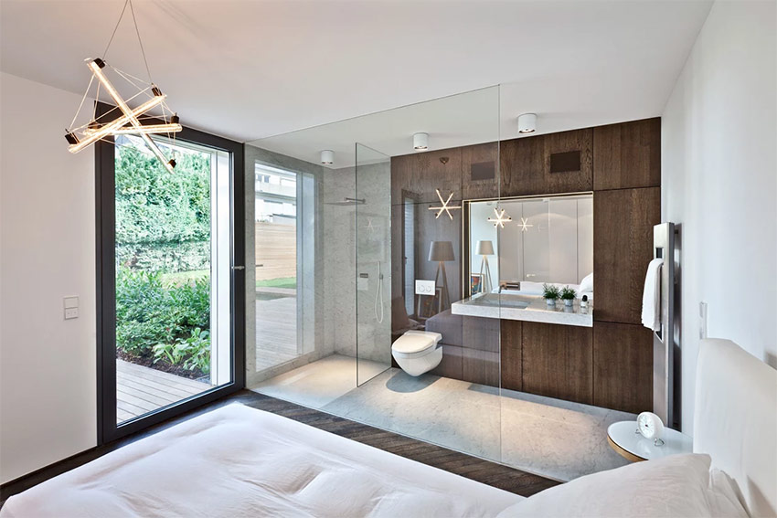 Dans un petit appartement, des cloisons en verre contribueront à maintenir une impression d'espace dans les pièces. Lors de la reconfiguration d'un appartement en studio, les murs supplémentaires sont démolis, unissant la région. Si nécessaire, séparez la cuisine ou le salon en utilisant du verre à l'intérieur.S'il est nécessaire de protéger un espace personnel - une chambre ou une salle de douche - utilisez une version dépolie ou teintée. Même en utilisant cette option, la lumière pénètre dans la pièce, un sentiment de liberté et une zone sont préservés.
