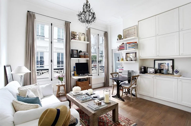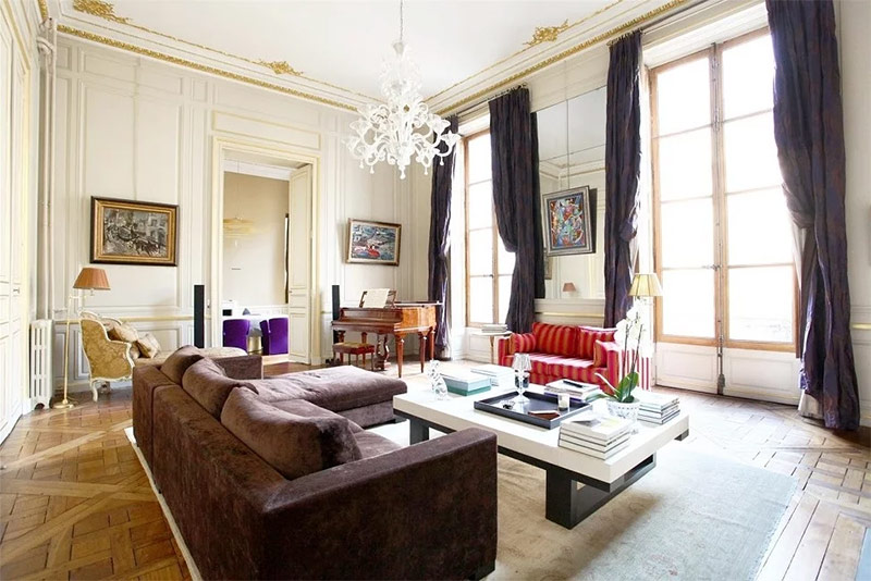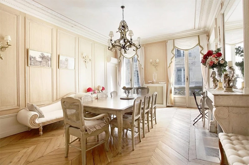 En fonction du style historique à la base du design français moderne, ils choisissent également des méthodes de finition. C'est-à-dire qu'un appartement dans un nouveau bâtiment peut être construit avec des éléments classiques ou de la Renaissance, complétant ainsi l'intérieur avec des moulures en stuc doré ou des fresques. L'appartement de l'ancien bâtiment n'est pas modifié, mais conserve seulement son apparence d'origine. Par exemple, dans les maisons parisiennes des XVIIe et XIXe siècles, les immeubles à appartements se distinguent par de hauts plafonds avec moulures en stuc et du parquet. Ils ne sont pas supprimés en raison de la prescription et de la détérioration, mais essayez de sauver.