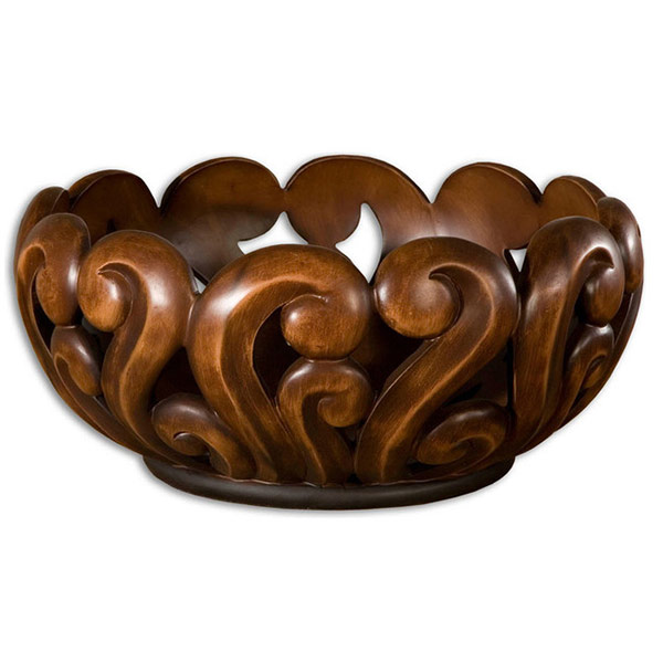 La chambre est décorée avec des meubles en bois et décorée de sculptures artistiques.