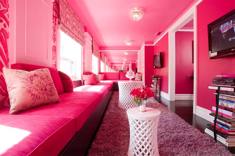 Souvent, les chambres ou les salons sont conçus dans une seule couleur, c’est-à-dire qu’ils se caractérisent par une "pièce bleue" ou une "chambre rose". Cependant, une telle formulation cache une combinaison de faces claires et sombres de la même couleur, ses tons moyens et sous-tons. Pour créer l'intérieur de la «pièce bleue», le papier peint et la peinture bleue sont sélectionnés, les rideaux et les textiles sont choisis dans la teinte bleue souhaitée, mais avec un motif. Ce mouvement ajoute de la vivacité au cadre. Les rideaux s'intègrent harmonieusement dans l'espace sans se détacher de l'arrière-plan.