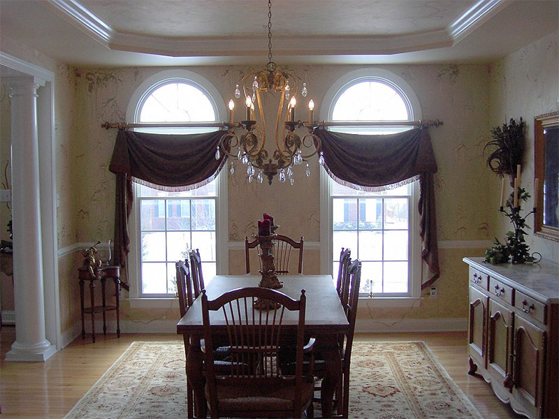 Les lambrequins sont largement utilisés non seulement dans la conception des bâtiments publics, mais aussi dans les intérieurs privés. En raison de la coupe différente, les lambrequins ont une taille et une forme de coupe différentes. Ils se caractérisent par l’utilisation de plusieurs types de tissus, l’association de plusieurs couleurs, la présence d’ornements décoratifs sous forme d’oeillets, de pendentifs, de micros, de franges.