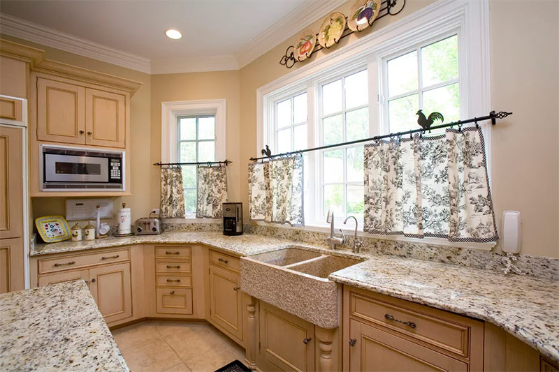 Les rideaux, rideaux de café et autres rideaux courts sont le plus souvent choisis pour la cuisine ou les petites pièces dans lesquelles ils ont l’air d’être appropriés. Des rideaux ordinaires recouvrent la partie supérieure de la fenêtre, des rideaux de café recouvrent la partie inférieure.
