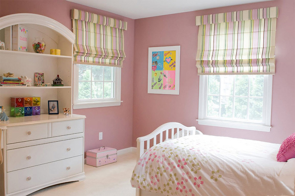 - pour la fille, vous pouvez choisir des stores en combinaison avec des rideaux en filament.