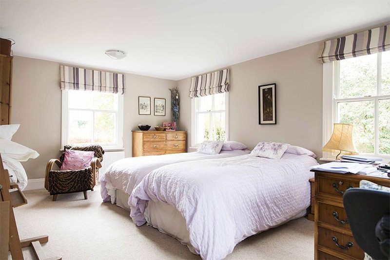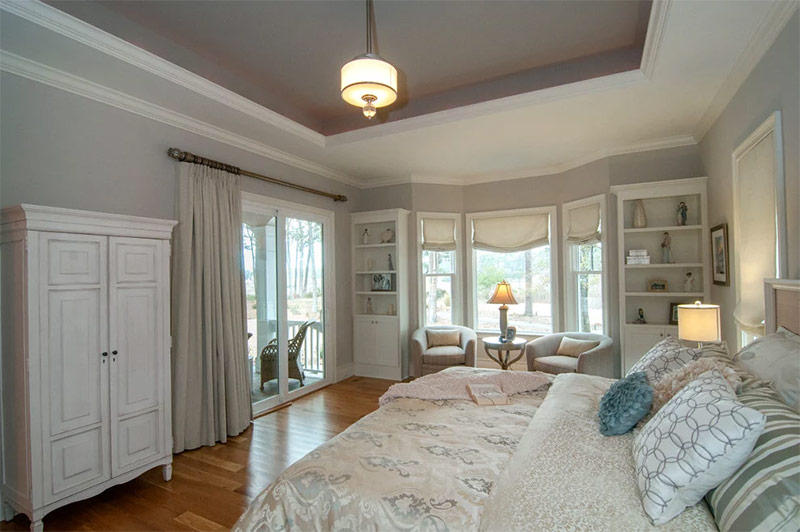 4. Quand il y a beaucoup de fenêtres dans la chambre à coucher, lorsque vous utilisez un long rideau sur chacune d'elles, vous pouvez avoir l'effet d'un excès de dessin textile et d'un dessin surchargé.