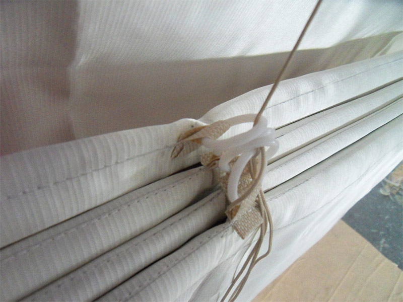- lors du soulèvement de la toile, de jolis plis lisses sont formés, qui sont empilés sur le bord inférieur les uns des autres;