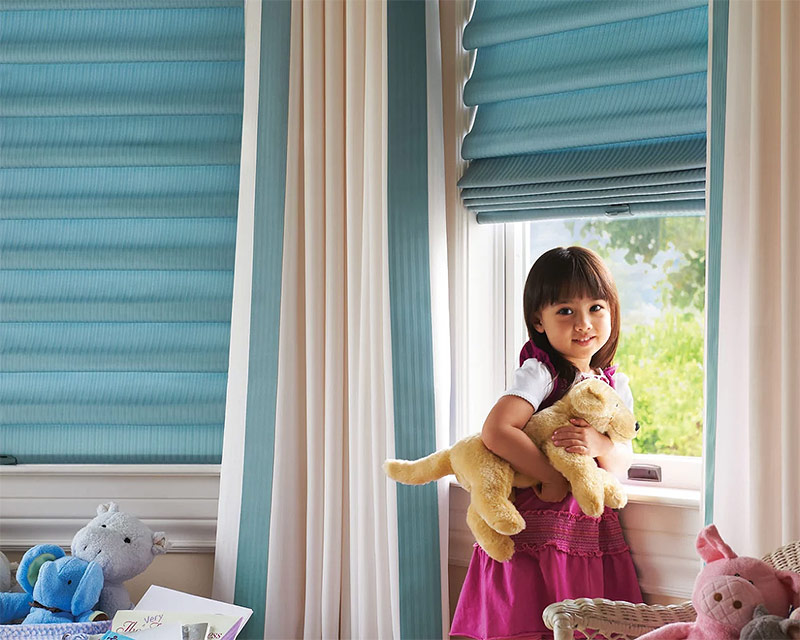 5. Si nous parlons de la conception d'une chambre d'enfants, l'utilisation de rideaux romains est justifiée à maintes reprises - lorsqu'ils sont fermés, ils ne laissent pas entrer la lumière, ce qui garantit un bon repos, et lorsqu'ils sont ouverts, ils exposent complètement la fenêtre et permettent d'obtenir le maximum de lumière nécessaire pour les cours ou la lecture.
