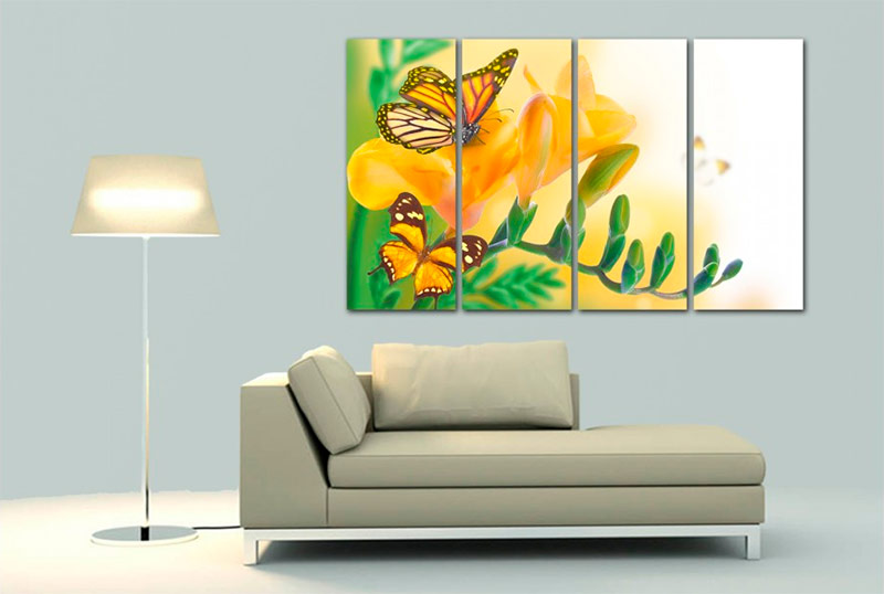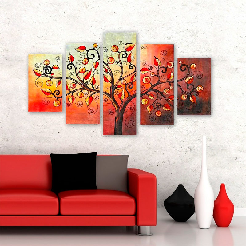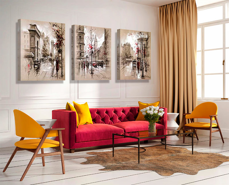 Utiliser des peintures modulaires à l'intérieur d'un appartement ou d'un bureau est non seulement à la mode, mais aussi pratique. Premièrement, les modules remplissent la fonction d'objet d'art, ce qui confère à la pièce une signification esthétique, rend son design individuel et mémorable. Deuxièmement, les images modulaires résolvent le problème de la décoration d'un mur vide, car elles se composent de plusieurs panneaux et occupent une grande surface. Leur principale différence avec les peintures ordinaires est que tous les segments sont des toiles séparées qui sont unies par une intrigue, une idée, un style ou un thème.