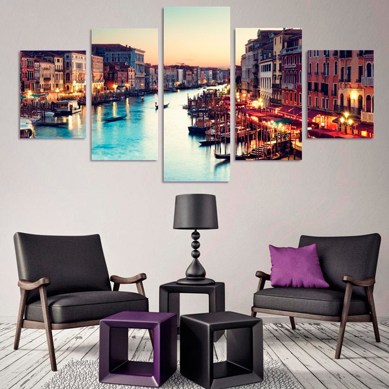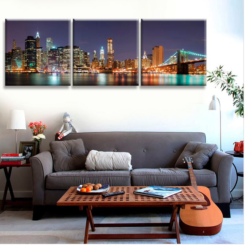 Les peintures modulaires dans le salon sont à la vue de tous les ménages et invités, c’est une carte de visite de l’intérieur. Eh bien, si vous pouvez choisir une histoire qui ravira tous les membres de la famille, quels que soient leur sexe et leur âge. Par exemple, cela pourrait être un paysage urbain. Il s'intégrera bien à l'intérieur de l'appartement, situé au dernier étage d'un immeuble de plusieurs étages. Si le salon est assez spacieux, il est préférable de choisir une image de quatre modules ou plus. Les paysages urbains comprennent des vues architecturales d'anciennes villes, des silhouettes modernes de gratte-ciel, des rues encombrées de complexes hôteliers.