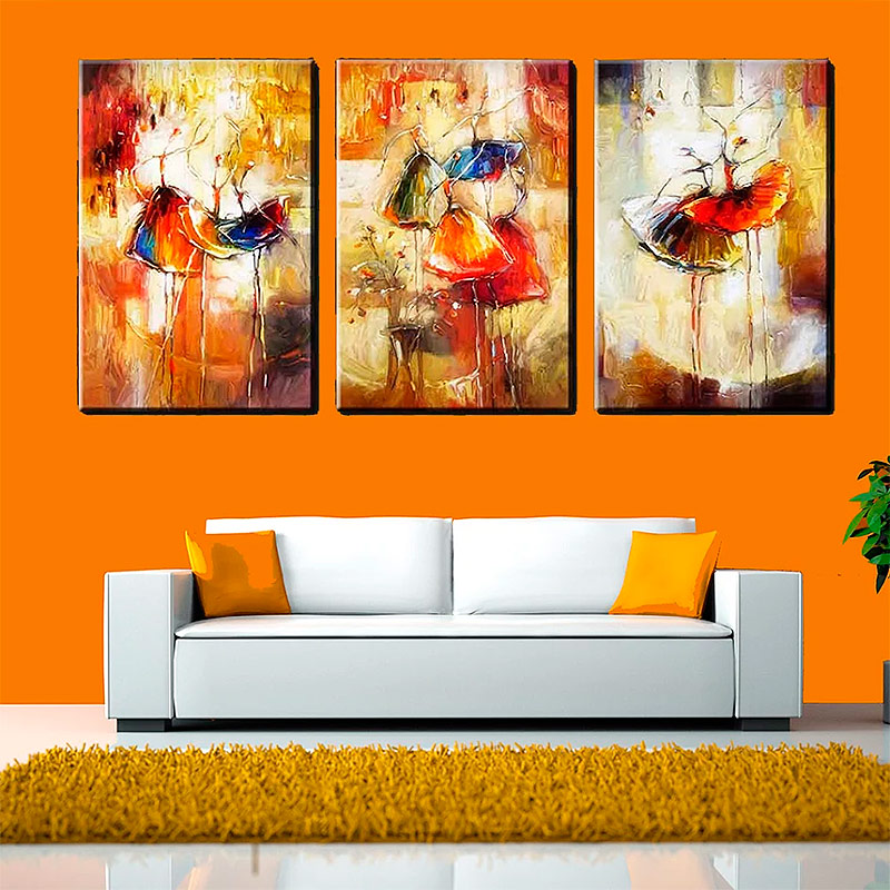 Triptyque "Ballerines" à l'intérieur du salon dans un style moderne.