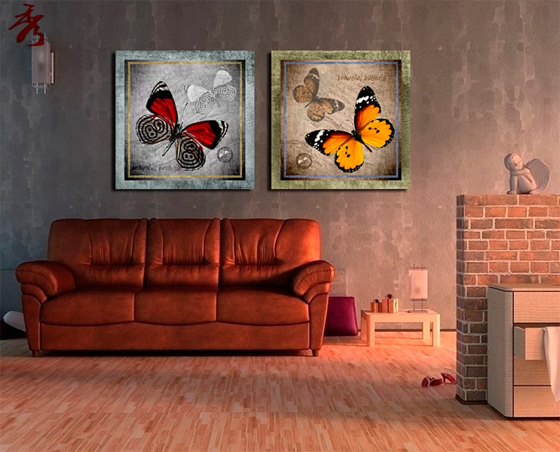 Diptyque "Papillons" dans un petit salon.