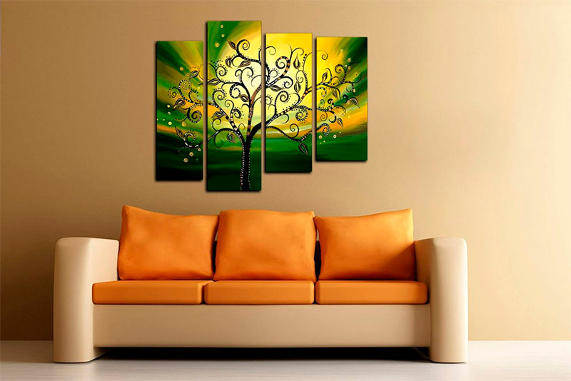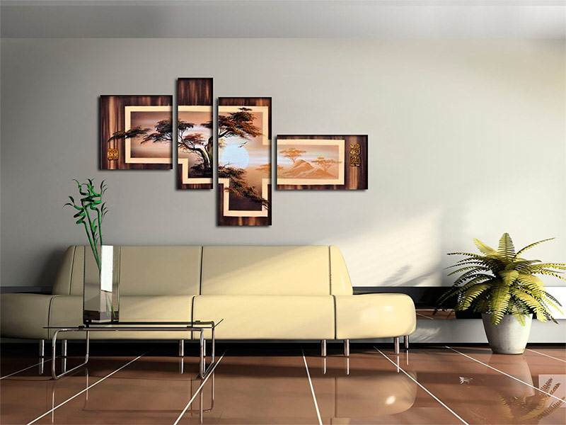 Les peintures modulaires dans le salon, dans un style high-tech ou minimalisme, permettent l’abstraction. Pour l'Art Nouveau, il vaut mieux se procurer une copie de la toile de l'artiste impressionniste, et pour l'intérieur en style ethnique, des vues sur la nature africaine et indienne conviennent.