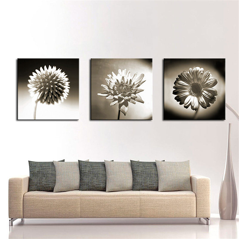 Triptyque "Fleurs" dans le salon.