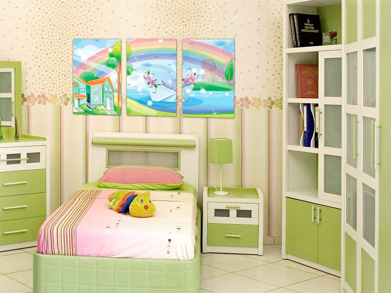 Lorsque vous achetez des peintures segmentées, il est important de choisir le bon scénario. Pour la chambre d'un enfant et d'un adulte, il est préférable de choisir une parcelle correspondant à l'âge. Et pour la cuisine et le salon - une parcelle qui correspondra au but de la pièce.