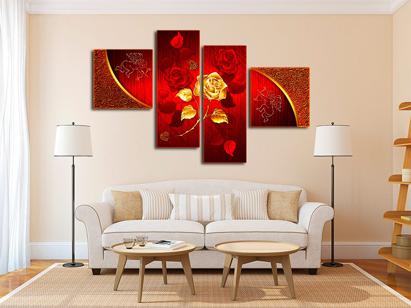 Polyptych peut être composé de quatre, cinq ou plus de modules. De telles peintures modulaires ont fière allure à l'intérieur du salon, du bureau ou de la salle. Ils nécessitent beaucoup d'espace.