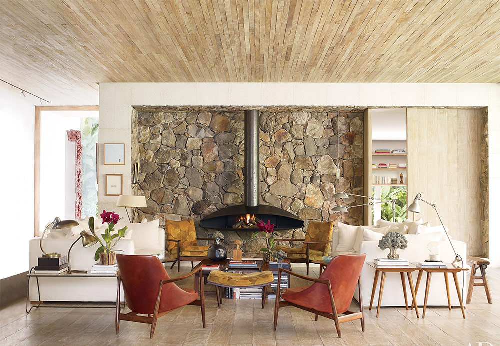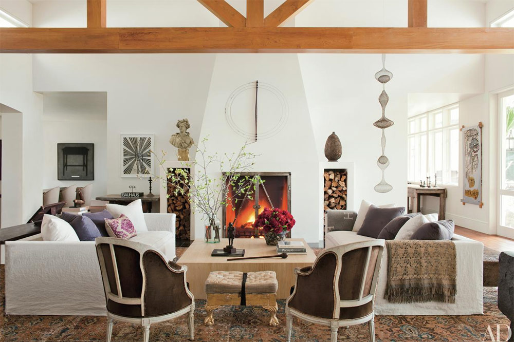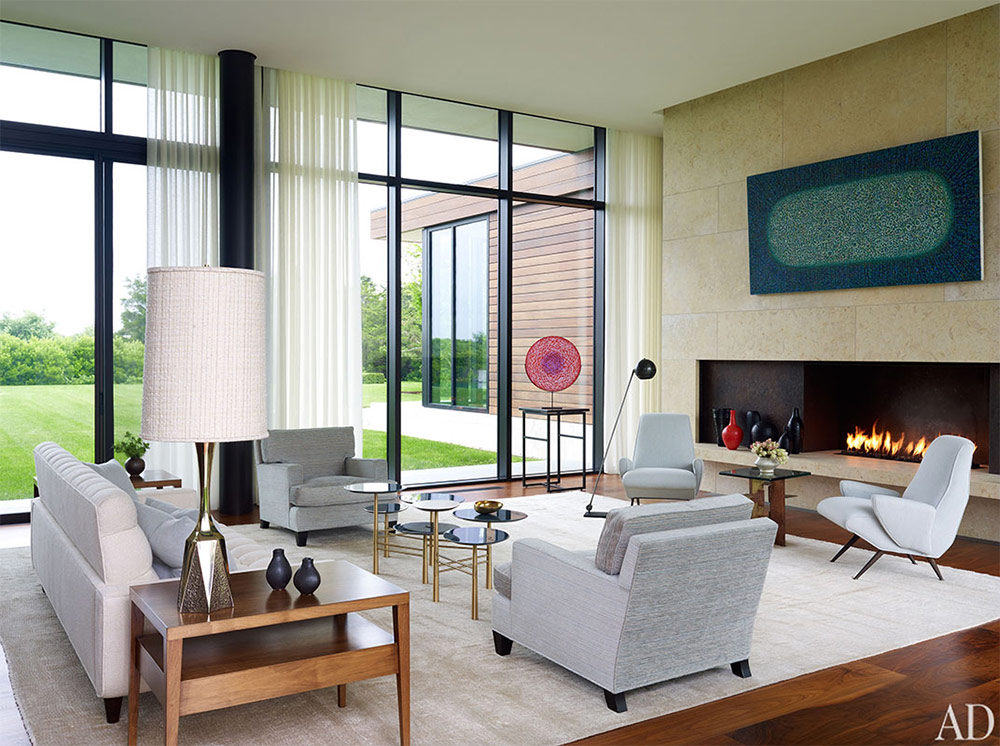 28 intérieurs de salon avec une cheminée de designers célèbres
