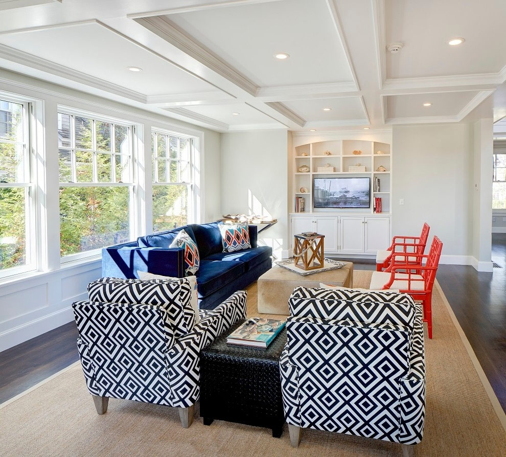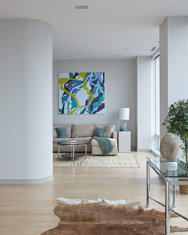 Les salles faisant face au sud (on parle de l'hémisphère nord, du sud - tout est exactement le contraire), sont très insolées. En hiver et en été, la partie de votre maison exposée au soleil prend des teintes jaune-rouge par temps clair. Les murs blancs sont un excellent choix pour refroidir ces espaces, et la couleur de la peinture peut être ajustée pour refléter la luminosité de la lumière. Par exemple, la couleur grise atténue les qualités réfléchissantes du blanc et aide à «calmer» un espace dans lequel de grandes fenêtres remplissent le salon de la lumière du soleil.