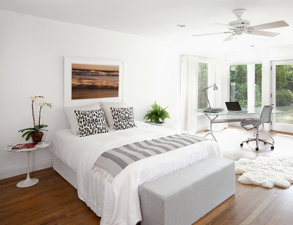 Avant de peindre la pièce en blanc, déterminez son orientation par rapport aux points cardinaux. Les chambres, qui font face au soleil de midi, acquièrent une teinte gris-bleu, parfaite pour une chambre à coucher, une salle de sport ou un studio. La peinture blanche optimise la lumière dans ces espaces tout en rafraîchissant les pièces.