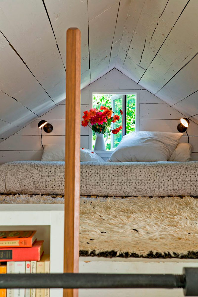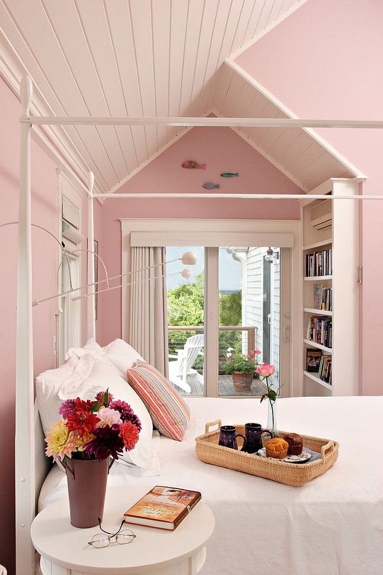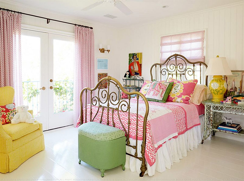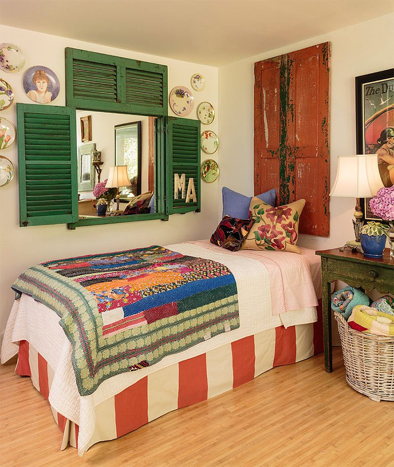 De beaux volets, des gadgets intéressants du marché aux puces et des couleurs vives pour la chambre à coucher dans le style shabby chic Mary Ann Shaklan).