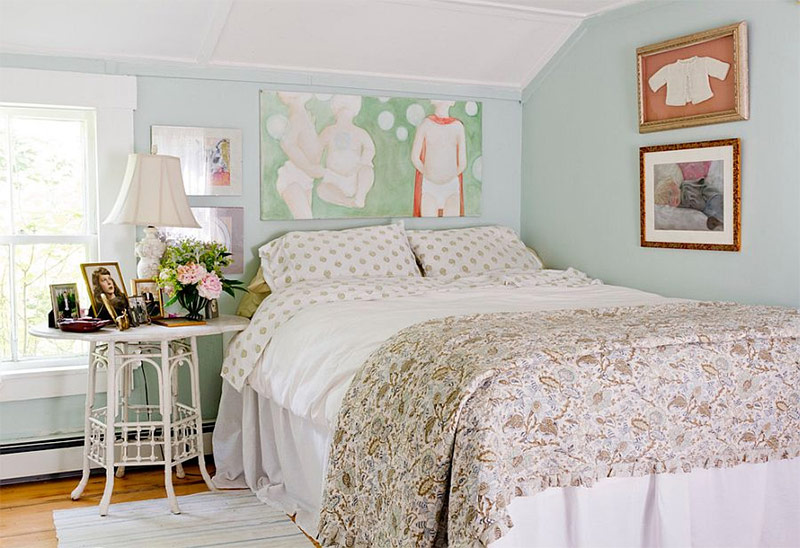 Il n'y a pas de règle stricte selon laquelle les chambres shabby-chic doivent être blanches et uniquement blanches. Bien sûr, en lisant cet article, vous comprendrez pourquoi, dans la plupart des cas, le blanc est l'option la plus appropriée, mais n'hésitez pas à ajouter un peu de votre propre "style" pour rendre la chambre vraiment unique. Au cours des dernières années, les couleurs pastel ont commencé à régner sur le monde de la mode et du design et vous pouvez les essayer dans la chambre à coucher. Le pastel et le shabby chic ne se ressemblent pas mieux, et c'est une approche qui ne manque jamais. Les nuances de rose tendre, jaune aqueux et vert élégant aident à se concentrer sur le décor ancien et lui donnent ainsi une nouvelle vie colorée.