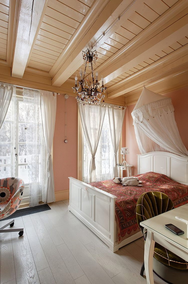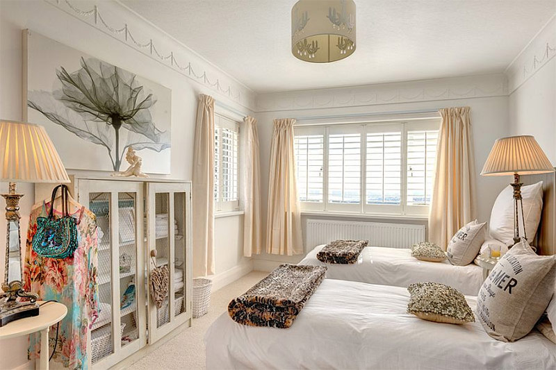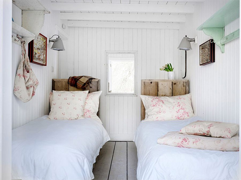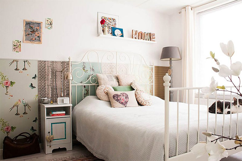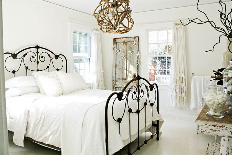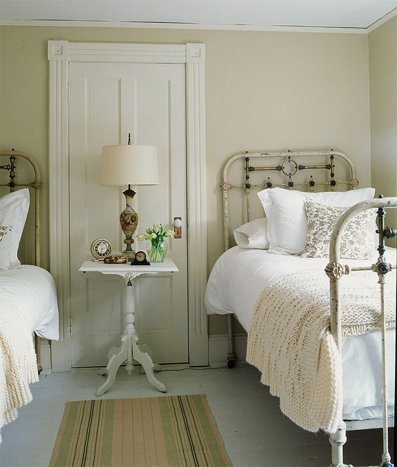 Si vous aimez le blanc, si vous voulez avoir une chambre avec une touche de féminité et en même temps renoncer aux alternatives brillantes modernes, le shabby chic est vraiment ce qu'il vous faut. Le blanc est le choix préféré dans la plupart des chambres chics et chics, car il crée un fond relaxant qui permet aux accessoires vintage de se démarquer. L'utilisation de différentes nuances de blanc minimise la fragmentation visuelle de la pièce. Si vous avez des doutes sur la décoration intérieure de la chambre dans le style shabby chic, choisissez une couleur blanche. C'est une option gagnant-gagnant!