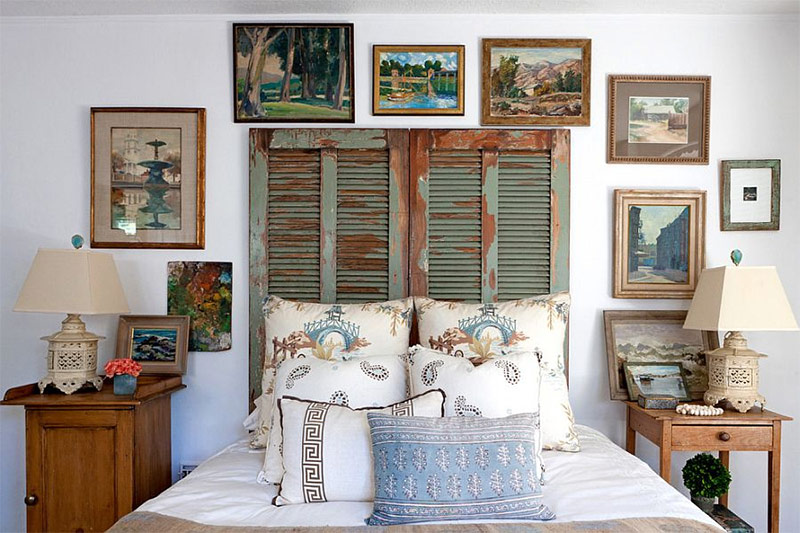 Les vieux volets ont été refaits en une tête de lit unique (de Leslie L. Hunt Design d'intérieur).