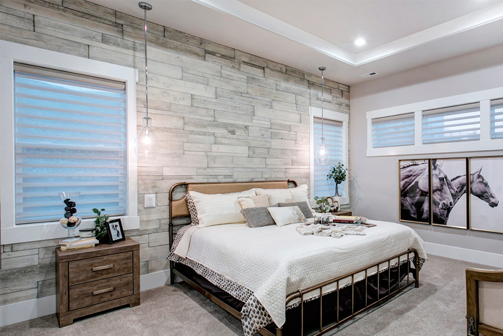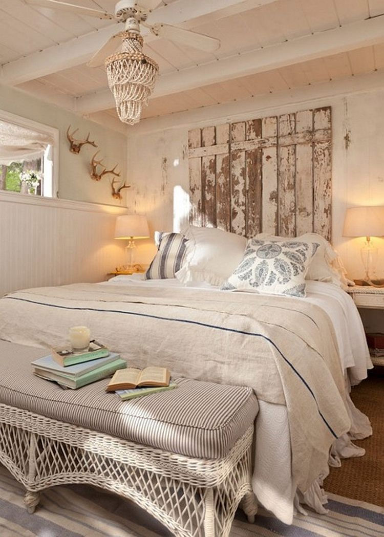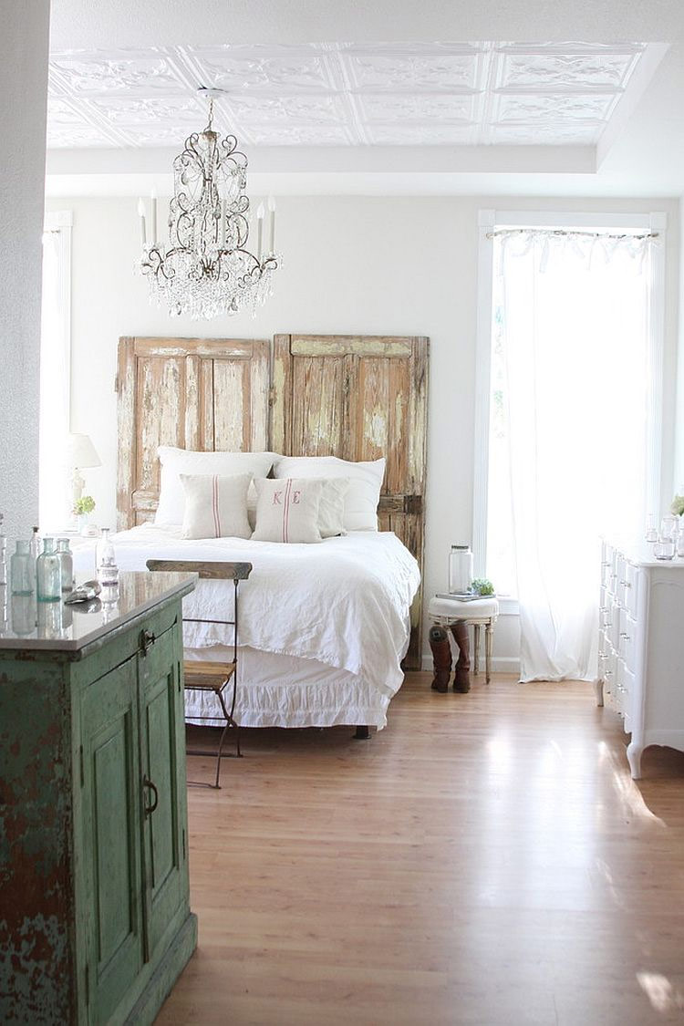 Les panneaux de bois vieillis sont un excellent moyen d’apporter le luxe du shabby chic à votre chambre à coucher Wendi jeune design).