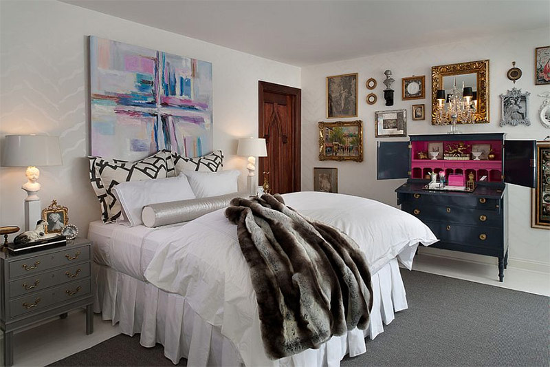 La superbe toile faite à la main ajoute de la couleur à une chambre entièrement blanche Liquid Design & Architecture).