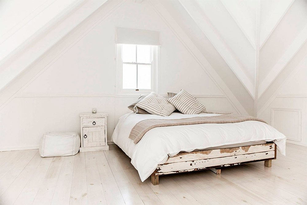 Chambre lumineuse et spacieuse en blanc (du Mina Brinkey).