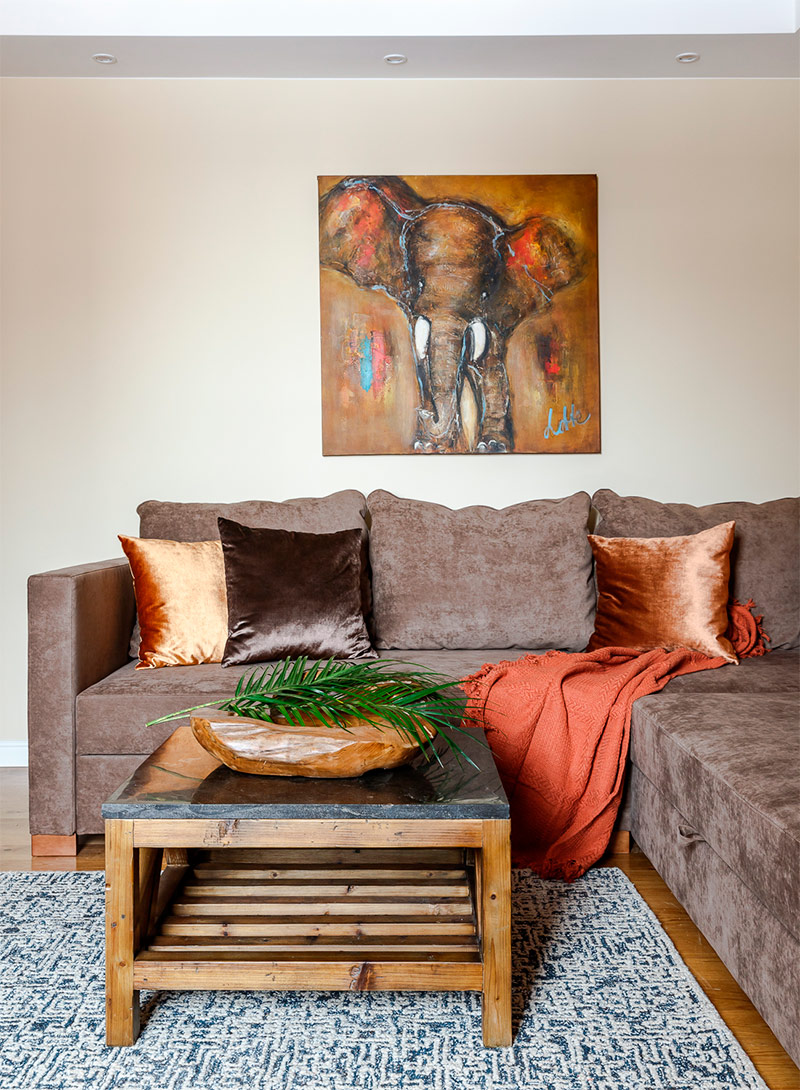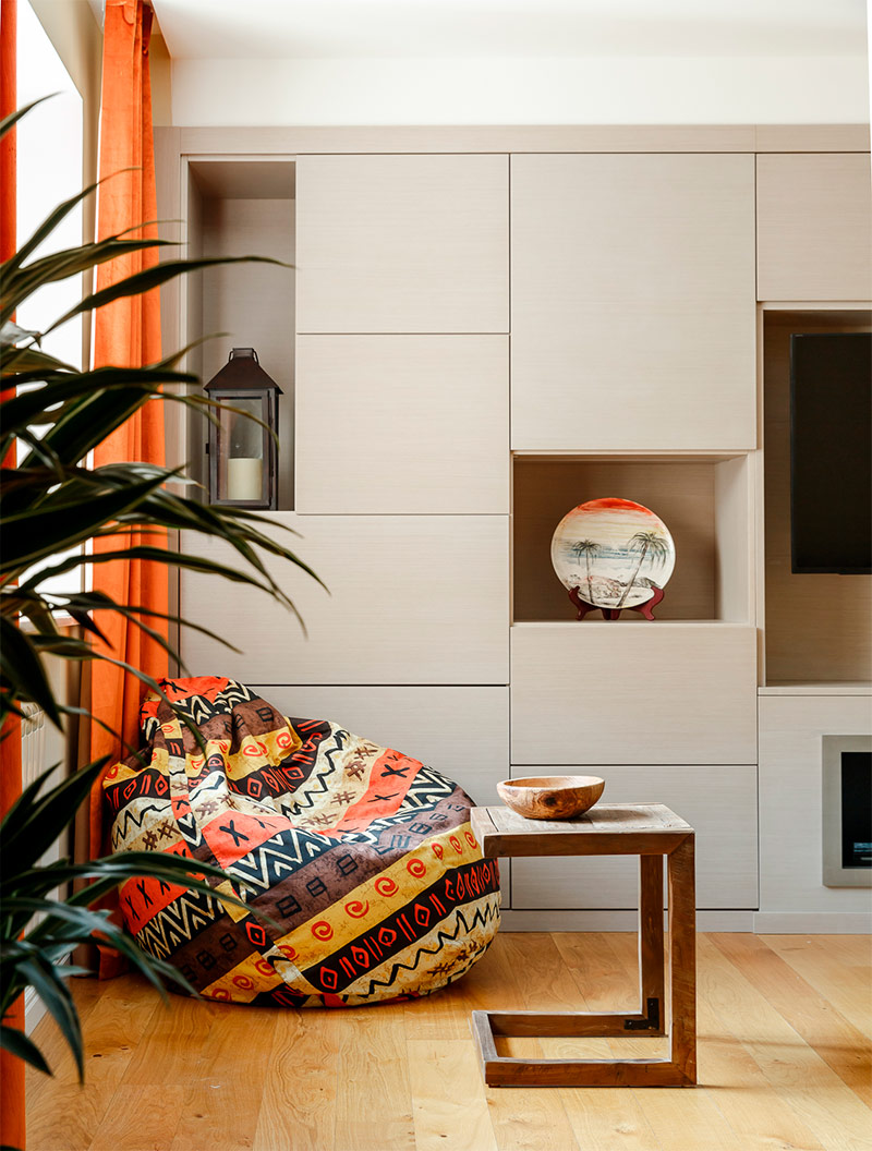 Réduisez la gaieté excessive de la pièce avec quelques éléments plus grands, mais plus calmes, comme un canapé et la couleur neutre des murs. Comment insuffler la vie à l'intérieur, la nature le sait mieux. Il ne doit pas s'agir de plantes d'intérieur - le même effet sera créé, par exemple, par une table basse en bois massif ou une chaise suspendue en bambou!