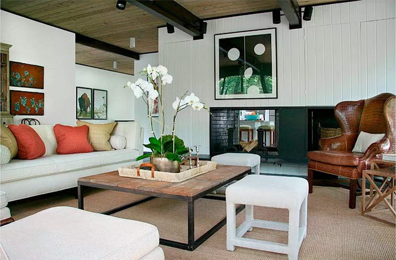 N'ayez pas peur d'expérimenter l'intérieur du salon de votre maison privée! Par exemple, j'aime beaucoup la combinaison d'un design moderne avec des antiquités. Si vous aimez vraiment quelque chose, vous pouvez le faire fonctionner.Parfois, un seul élément peut modifier l'ensemble de votre schéma de conception. Cette maison de la Nouvelle-Orléans, appartenant à Sarah Ruffin Costello, est un espace très vivant et élégant. Un lustre unique et d'énormes feuilles de bananier sur la cheminée rendent l'intérieur plus spectaculaire. Une peinture et un magnifique miroir antique sont également une combinaison gagnante.