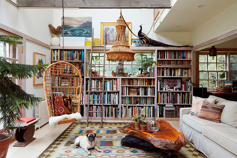 Au fond de moi, je suis un maximaliste, donc, de mon point de vue, ce salon éclectique et bohème est un lieu idéal pour la vie privée. Pour apporter des éléments bohèmes dans votre chambre, vous aurez besoin de nombreux livres, de merveilles recueillies au cours de vos voyages dans le monde entier et de choses qui vous raviront - tout cela est idéal pour décorer le salon!