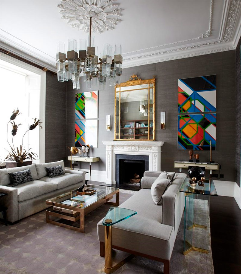 J'aime ce salon: il combine tellement de choses que j'aime - des canapés modernes aux miroirs vintage et à une table basse en laiton, des œuvres d'art colorées à une lampe qui attire l'attention. Le glamour suinte de partout, mais en même temps l'intérieur ne semble pas du tout gênant. Il est très important pour moi de maintenir une palette de couleurs limitée afin que la pièce crée un sentiment de calme et d'harmonie. Mais en fait, un mélange de textures et de matériaux règne ici, les yeux ont donc quelque chose à regarder. Ce salon est un exemple idéal d’une combinaison habile de styles et d’éléments différents, mais en raison de la palette de couleurs limitée, il est très confortable. Pour moi, c'est l'espace de vie adulte idéal.