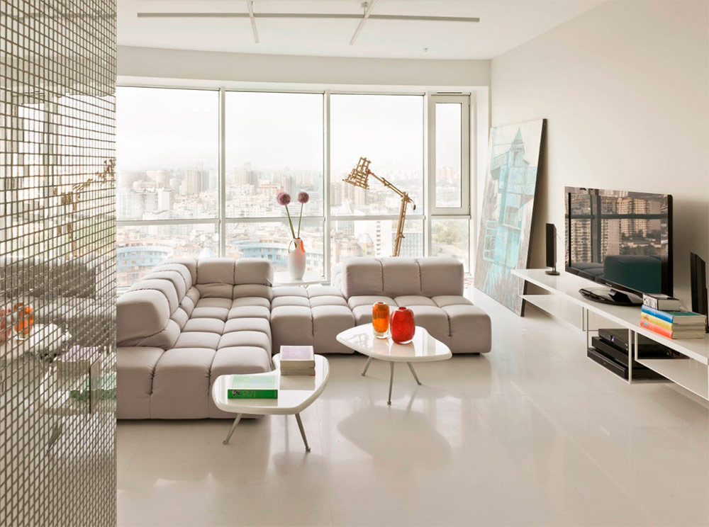 En règle générale, les meilleurs intérieurs résultent de la combinaison de différentes idées sur la beauté. C'est ainsi que naît un style unique. Prenons par exemple ce magnifique salon bohème. Remarquez comment la blancheur pure des meubles et des murs est contrebalancée par des taches de couleurs vives. La combinaison d'un canapé, simple et moderne (sans oublier sa commodité, qui est également très importante!), Avec cette incroyable table basse de style marocain et ce tapis à rayures lumineuses confère à l'espace une individualité et crée un style. Ajoutez beaucoup de lumière naturelle provenant des nombreuses fenêtres et vous obtiendrez un salon de rêve.