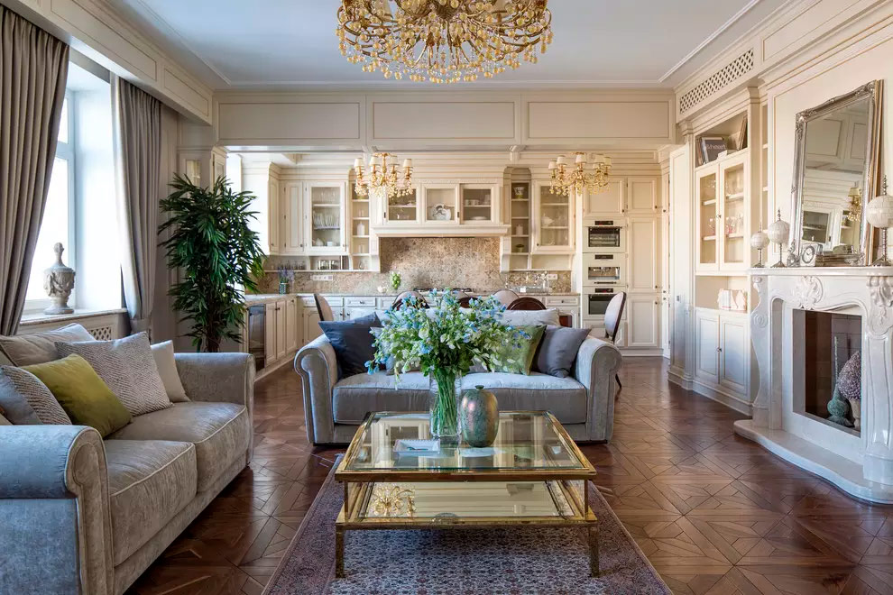 La symétrie est la clé pour créer un salon haut de gamme et professionnel. Tout d’abord, sélectionnez un foyer dans votre espace, qu’il s’agisse d’une cheminée, d’une grande sculpture ou d’un canapé de conte de fées, et utilisez-le comme centre de l’espace. Utilisez des miroirs pour agrandir visuellement la pièce et remplissez-la de lumière, utilisez des coussins de différents matériaux pour ajouter de la texture à l'intérieur, utilisez des fleurs pour créer une touche de douceur. Tout cela contribuera à apporter de la symétrie et de l'élégance à votre salon.