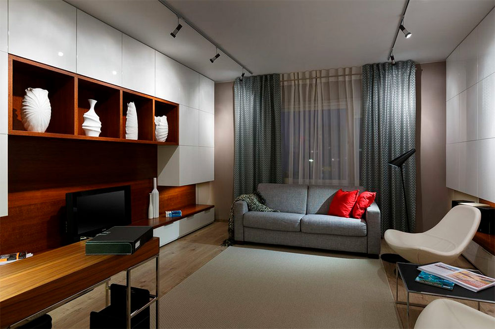 Je suis un grand fan d’intérieurs dans lesquels la couleur et la personnalité abondent, et cet espace est bien sûr à mon goût. Cet intérieur utilise de merveilleuses couleurs vives et audacieuses introduites avec des accessoires d’accentuation. Après avoir regardé attentivement, vous remarquerez que les murs et les meubles sont calmes et assourdis, de sorte que, dans le futur, en utilisant des éléments d’accent différents, la palette de couleurs de l’espace puisse être facilement modifiée. L'éclairage est l'une des fonctions les plus importantes du salon, cet espace ayant plusieurs fonctions. Cette pièce a plusieurs sources de lumière différentes qui créeront une atmosphère merveilleuse dans le noir.