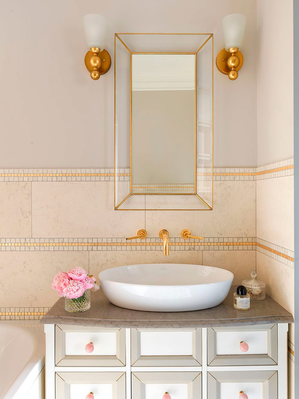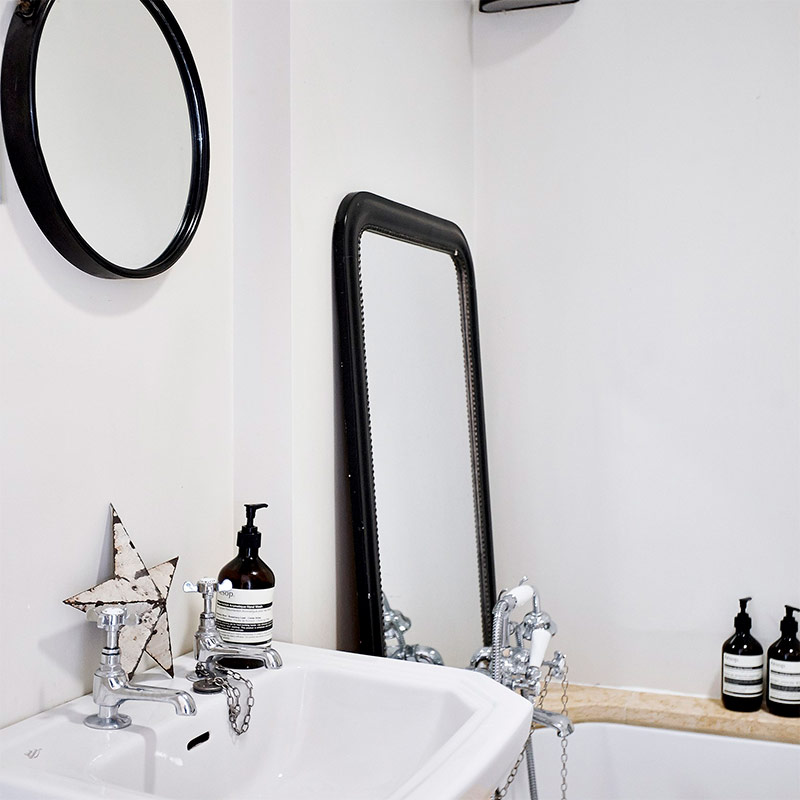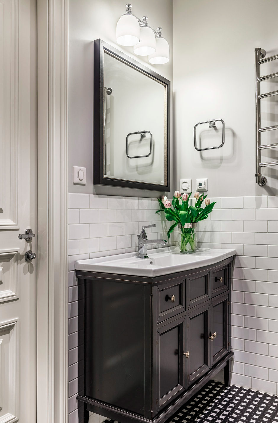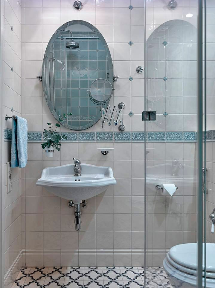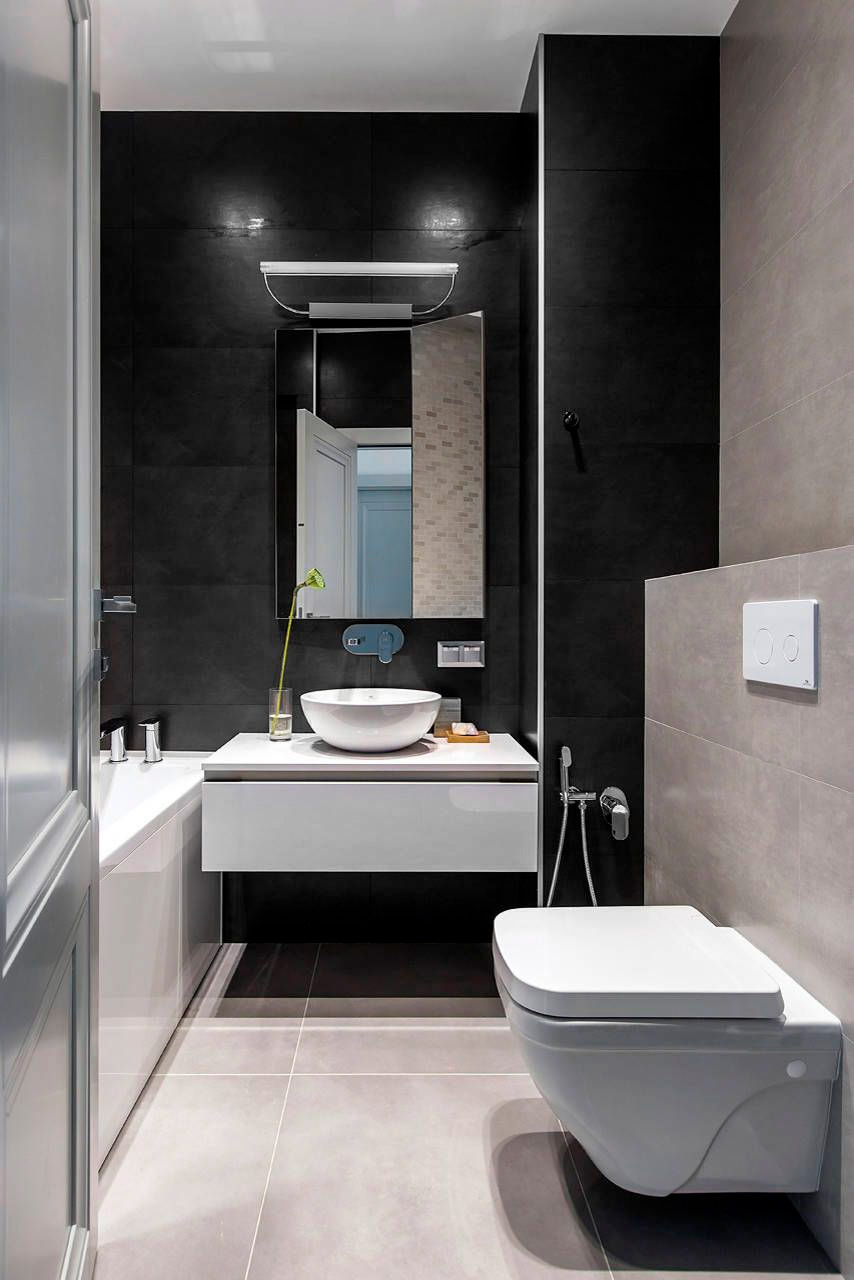 2. Il n'est pas nécessaire de faire une petite salle de bain simple et minimaliste. Si vous aimez le style vintage, alors ne l'abandonnez pas. À l'autre extrémité du spectre de la décoration se trouvent les salles de bains de style hôtel. Choisissez un intérieur noir et blanc chic, parfumé au gris tendre - dans son monochrome, il aura l'air frais et moderne.