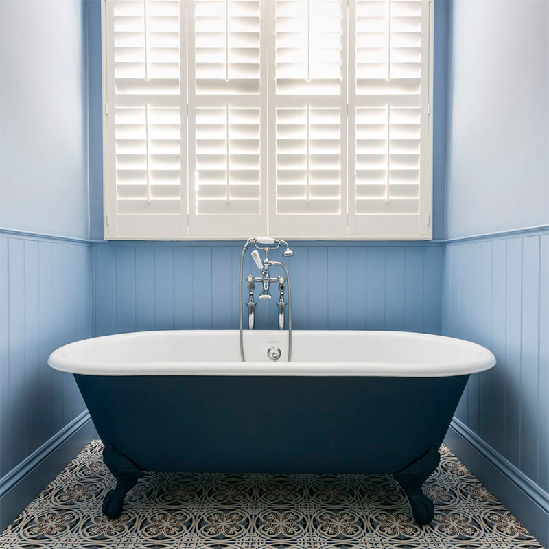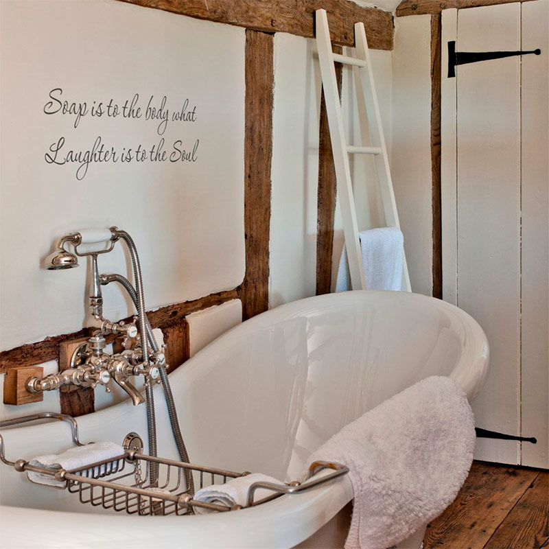 Une baignoire sur pied peut devenir un élément central dans un petit espace. Il n’est pas aussi grand que vous le pensez. Si vous le souhaitez, vous pouvez acheter une version complètement compacte qui s’intègre dans une pièce très encombrée. Ajoutez un beau pochoir sur le mur ci-dessus - il attirera l'attention et vous ne remarquerez plus à quel point votre salle de bain est vraiment petite.