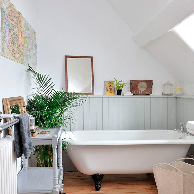 Par exemple, lorsque vous décorez une petite salle de bain située dans le grenier, tracez une ligne horizontale tout autour du périmètre de la pièce, en utilisant du carrelage ou de la peinture. Cette astuce élargira visuellement l'espace, créant l'illusion d'une pièce plus grande.