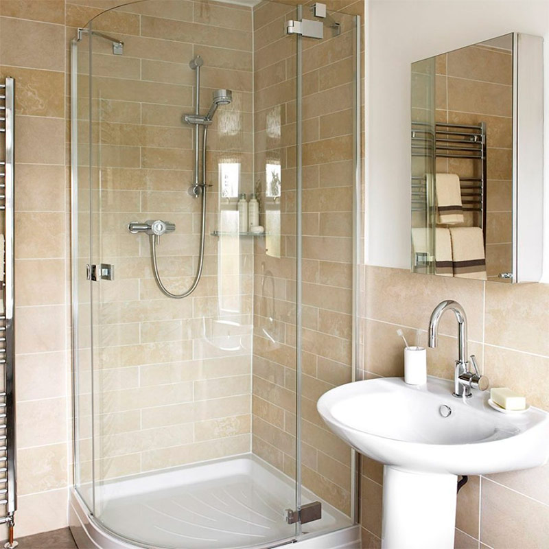 Si vous l’avez très près, privilégiez le design angulaire. La meilleure option est une douche arrondie. Il est très compact et sa porte coulisse sur le cadre. Vous avez donc exactement besoin de l’espace disponible sur l’échantillon d’exposition présenté en magasin. Si vous le souhaitez, vous pouvez installer une cabine carrée. Évitez tout simplement de faire pivoter les portes qui nécessitent un espace supplémentaire.