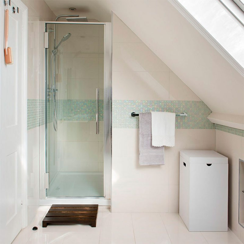 La salle de douche vous permet de maximiser l'utilisation de l'espace disponible. Si vous avez un grenier à votre disposition, envisagez d'abandonner la salle de bain au profit de la douche. C'est un excellent moyen de «tirer le maximum» d'un petit espace. De plus, si la salle de douche est joliment décorée avec une connaissance de l'art du design, elle a l'air incroyable. La clé est la ventilation. L'accumulation de vapeur d'eau peut entraîner de la condensation et, par conséquent, des problèmes de moisissure et d'autres problèmes dus à l'humidité. Installez donc un bon ventilateur d'extraction. Les planchers chauffants ne prennent pas de place, mais réchauffent la pièce et aident à drainer rapidement les surfaces.