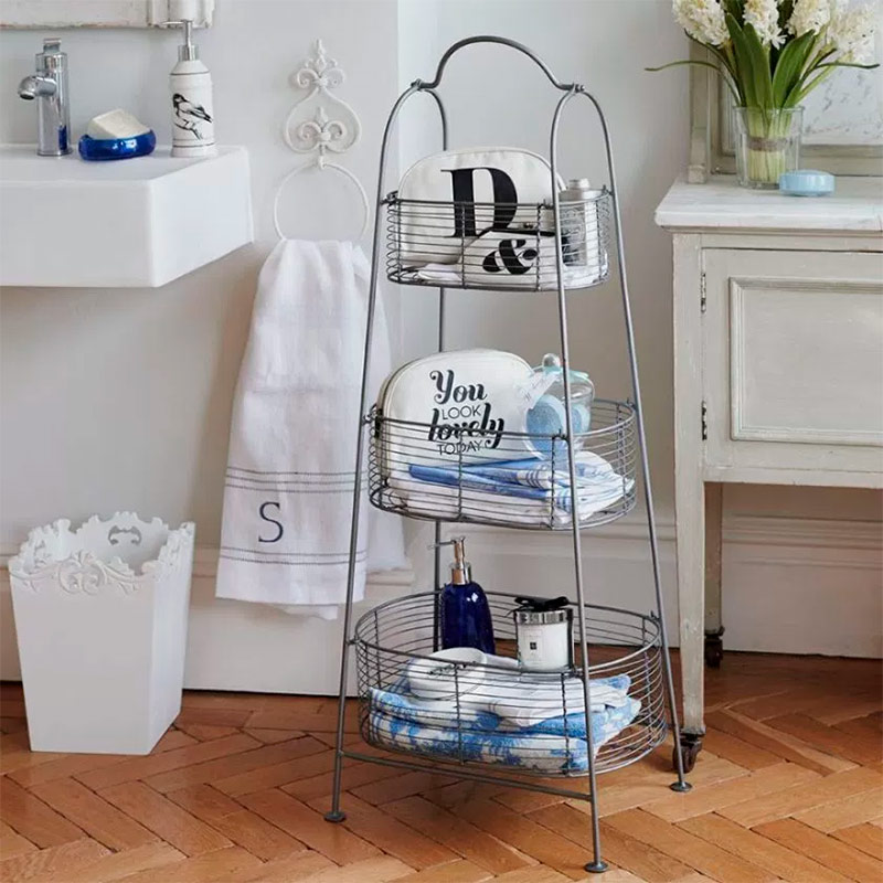 Une étagère à plusieurs niveaux vous permet de garder en ordre les lotions, les shampooings et les crèmes et de les rendre facilement accessibles. Si vous êtes trop de monde, vous pouvez ranger l’étagère avec des articles de toilette à un autre endroit et l’apporter à la salle de bain en cas de besoin.