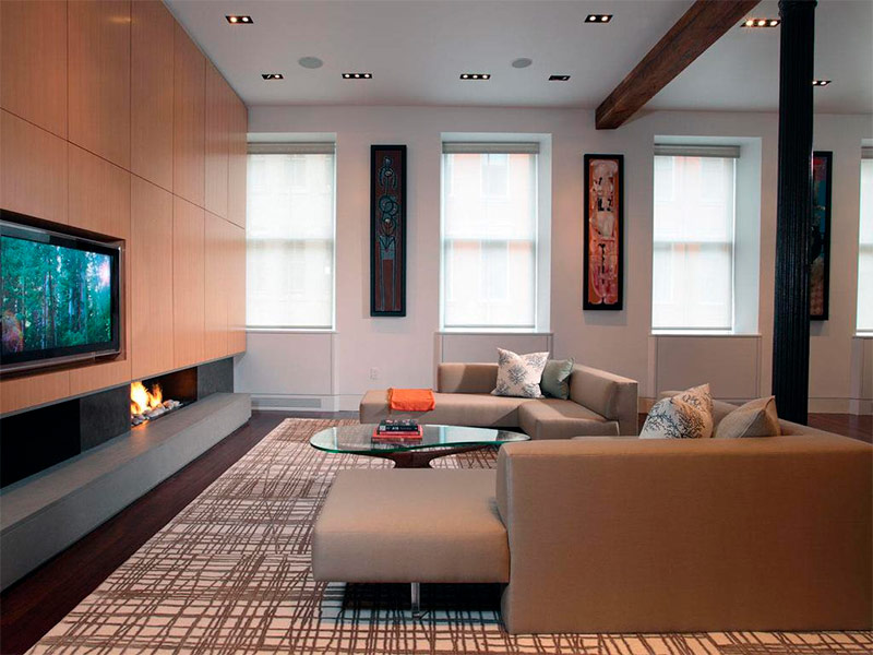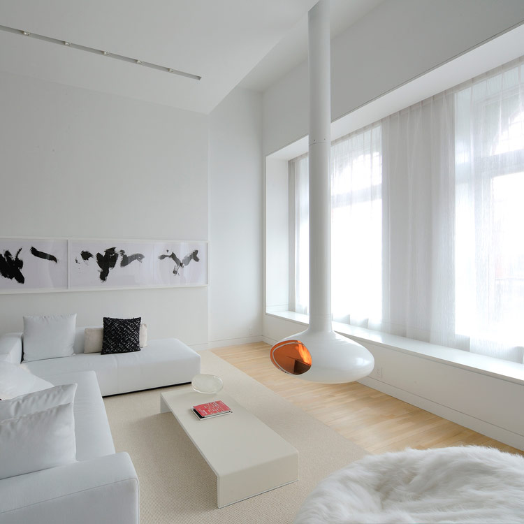 Superbe salon minimaliste moderne dans l’une des maisons de New York (de 4 architecture).